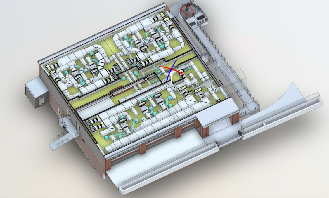 Dense ducting and equipment across a large floor—issue‑free layouts.